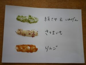 今回は『絹さや&いんげん、さつまいも、りんご』の3種類です。