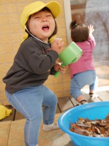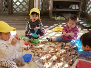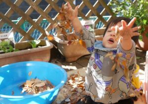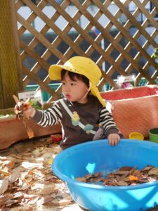今回は、落ち葉で遊んでいるこどもたちの様子をお伝えします!