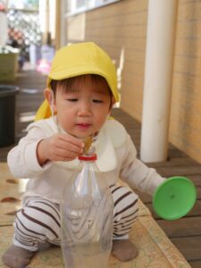 そんなお友だちの様子を見ていたOくんも玩具の箱から同じくスコップを持って来て、真似っこしていました♪