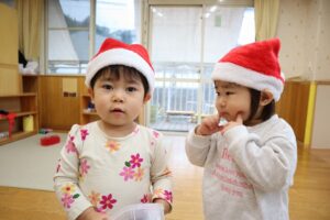 保育者が『あわてんぼうのサンタクロース』を歌うとみんなこの帽子を被り、リズムにのって手拍子をしながら一緒に歌ってくれます♪