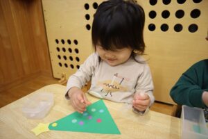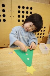 クリスマスにちなんで、クリスマスツリーの製作も行いました!