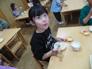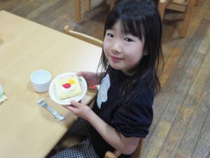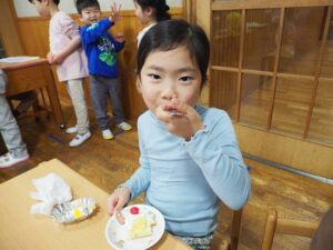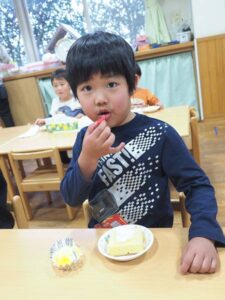 絵本「めしあがれ」より、クリスマスケーキをおやつに出しました