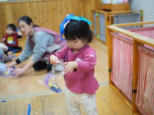 どんどんと新しい姿を見せてくれるにこにこ組のこどもたち。今月も戸外や室内で、一緒に遊びました!
