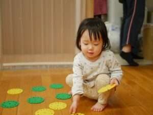 ロンディー落とし用のロンディを床に並べて…