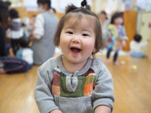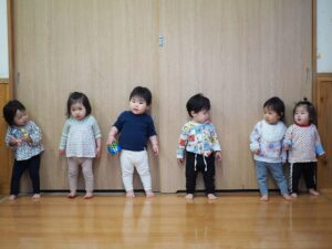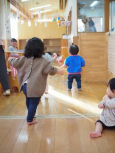 「よーいどん!」と保育士が言うと、初めは1人2人が走りますが、楽しそうな姿を見てどんどん増えていきます。