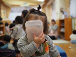 普段具材を入れているタッパーも、顔を隠して~